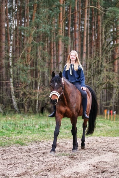 Por precio de invierno y para que pueda adaptarse a su nuevo hogar antes del nacimiento de su potro, BS Balalijka es una yegua árabe de color castaño oscuro, nacida en 2009. Está cubierta por el semental árabe egipcio de línea asil, BS Echnaton, para la temporada 2026. Se pueden visitar dos hijas de Echnaton nacidas este año en la finca. Un potro árabe de 3 años, de línea Rapp, ya está siendo montado de manera sencilla y sin problemas, y un hijo de 5 años, también de línea Rapp, está iniciando su primera temporada en pruebas de resistencia y ha sido aprobado para la selección de sementales. Balalijka ya ha tenido dos potros, uno de ellos por un semental Hannoveriano de la línea Weltmeyer. Tras su segundo potro, fue preparada para las pruebas de resistencia y, desde la temporada 20/21, ha acompañado a su jinete en competiciones de más de 93 km sin fallos. Destacan sus buenos valores de pulso y su rápida recuperación. En cada prueba de resistencia, ha terminado en el top 3. En julio de 2022, sufrió una cojera y fue llevada a la clínica, donde se encontró y extrajo un chip. Después, fue entrenada nuevamente con calma. No ha vuelto a presentar cojera y todos los chequeos posteriores han sido normales. En 2024 y 2025, ha permitido que dos jinetes jóvenes compitan en pruebas de resistencia. Balalijka demuestra ser amigable con los niños. En 2025, participó con su jinete en un campamento juvenil. El potencial de Balalijka es versátil. Puede continuar en la cría, dedicarse a la recreación, al deporte o convertirse en caballo de enseñanza, según lo que se decida. Actualmente, está en uso y puede ser probada en montas por interés.