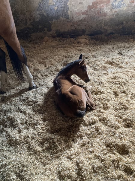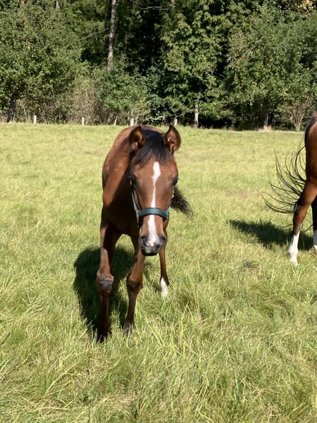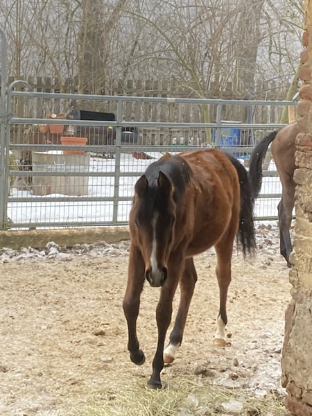 Aus privaten Gründen muss ich mich leider von meiner selbstgezogenen Jungstute trennen. Ellie wurde letztes Jahr (03/2025) bei mir geboren, geht brav am Halfter und gibt schon brav Hufe. Sie ist auch schon brav beim Schmied. Ellie ist aufgrund ihrer Abstammung sowohl für die Zucht, den Sport als auch für die Freizeit interessant. Ellie besitzt wunderbare, elastisch-weiche Gänge, welche jetzt schon auf ein tolles und komfortables Reitpferd hindeuten!! Sie kann natürlich auch weiterhin zur Aufzucht da bleiben, steht mit einer gleichaltrigen Stute gemeinsam über Nacht zusammen, tagsüber dann draußen, kennt daher Koppel und Box. Ist im Herdenverband aufgewachsen. Geimpft, gechippt und regelmäßig entwurmt! Preis ist VHB. Ansehen lohnt sich! Transport möglich. Bitte anrufen oder per WhatsApp anfragen :)