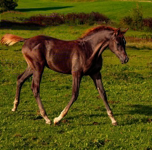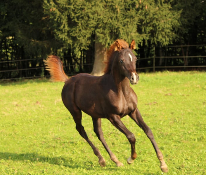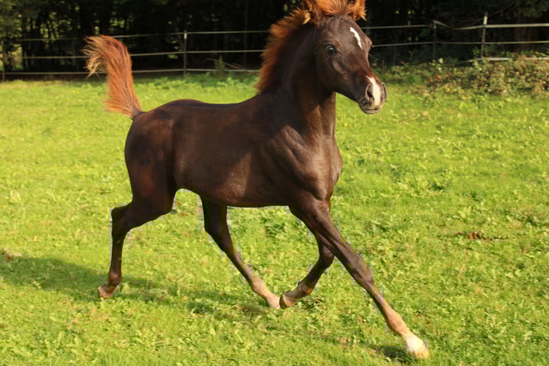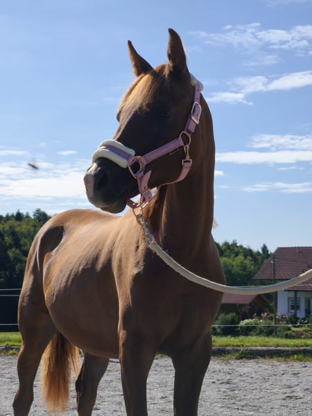 KA Orana ist eine 1-jährige, vom ZSAA mit Silber 2* prämierte, VA Stute. Bei ihr passt einfach alles. Sie wird ziemlich gross, sehr sportlich. Ihre Eltern gingen beide erfolgreich im Distanzsport. Ihre Mutter ein wahres Konditionswunder, der Vater AJ Shirass hat sich im sämtlichen Sparten einen Namen gemacht. Die Stute wächst im gemischten Offen- Bewegungsstall mit unterschiedlichsten Böden auf. Ist optimal mit allem von Anfang an versorgt worden einschließlich Hufe trimmen. DasxReitbild zeigt die 4 jährige Vollschwester, sie steht bei mir und kann ebenfalls besichtigt werden. Sie wird nur in besten Händen verkauft. Sie kann auch hier stehen bleiben.