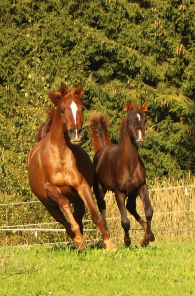 KA Orana is a 1-year-old mare, awarded Silver 2* by the ZSAA. Everything about her is just right. She is expected to be quite tall and very athletic. Both of her parents were successful in endurance sports. Her mother is a true endurance wonder, while her father, AJ Shirass, has made a name for himself in various disciplines. The mare is growing up in a mixed open movement stable with a variety of ground surfaces. She has been optimally cared for from the start, including hoof trimming. The riding picture shows her 4-year-old full sister, who is with me and can also be viewed. She will only be sold into the best hands. She can also stay here.