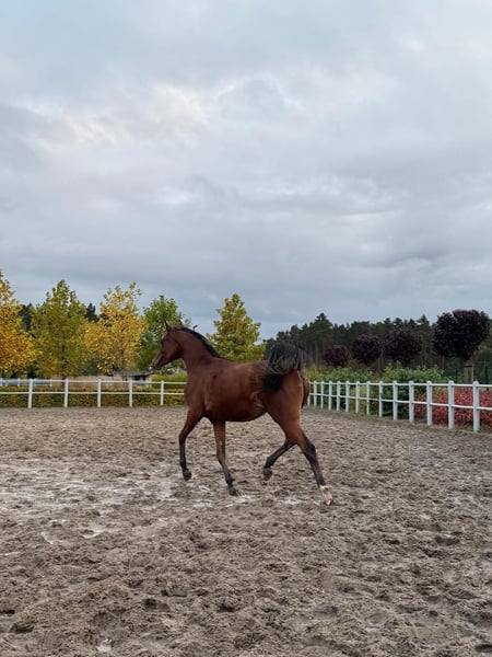 For sale: a beautiful, dark bay Arabian mare with an exotic pedigree D HADDAR (AE) x EKSPULSJA. Born in 2024, she is an elegant-looking mare with a refined appearance. Perfect for breeding, with great potential for reproductive achievements. Ideal for enthusiasts of Arabian horses who value quality and classic elegance. Please contact us for more information!