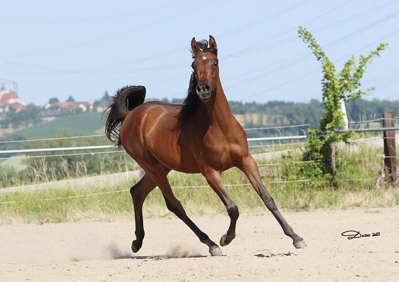 Miray MWA – urocza roczna klacz VA z miłej, hobbystycznej hodowli na sprzedaż! Charakteryzuje się bardzo spokojnym i opanowanym usposobieniem, zawsze chce się podobać – z największą cierpliwością pozwala dzieciom ją prowadzić, czesać i rozpieszczać. Obie jej rodzicielki to niezawodne konie do jazdy i terapii, a Miray już również wykazuje takie predyspozycje! Idealna jako koń rodzinna, do wspólnego rozwoju i codziennego zakochiwania się w tej wspaniałej i wszechstronnej rasie! Dziewczyna rośnie zgodnie z naturalnymi potrzebami w stadzie, zna wolną stajnię i boks, jest oswojona z maszynami rolniczymi, samochodami i psami, pewnie opanowała podstawy młodzieńca, jest zdrowa, zaszczepiona, z chipem i posiada pełną dokumentację od Związku Hodowców Arabów Czystej Krwi Austrii. Więcej informacji chętnie udzielę na zapytanie +43 664 422 9133