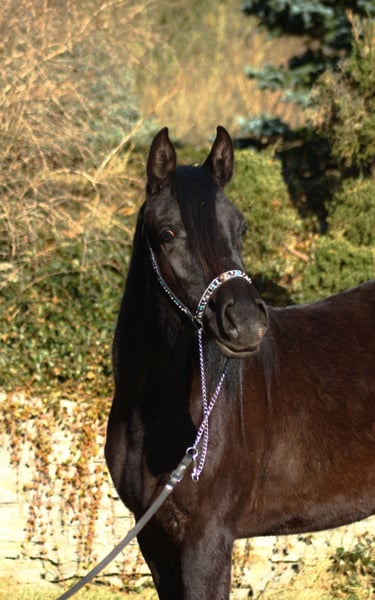 Nice 2 yo filly, black homozygous (DNA tested) looking for a new home. Will be tall, final estimate height ca. 155/6 cm . Correct solid body, straight legs. Interesting pedigree with champions such as Simeon Sadik , Dubai Pasha, Thee Desperado, Wagram, Probat etc. Interesting old polish bloodlines, sire line KUHAILAN AFAS , mixed with best egyptians lines such as Thee Desperado, Bey Shah, Bey El Jamaal.... Diamond Diva is a prospect for breeding but also as a future riding companion for trails or endurance because of her top endurance sire's line ( Wagram****, Palas****, Hadban Enzahi etc. ) She is closed related to 120/160/210 km horses, for example : Ro Shy MOon- recent winner 160 km Dubai and speed record holder. Ro Patagonia 3th in CEN 160 km HH President Cup UAE Halfbrother Jaskier is 2 x winner in 120 km prestige races in UAE. Halfsister Currara 3rd in CEI* 100 km Samorin 2025 His uncle Maestro (halfbrother to sire) was 5th in CEI*** 160 km Castiglione Dl Lago and 13th in CEI*** 210 km Samorin. His aunt Sokolda (full sister of sire ) was 2nd in CEI* 100 Schweich, 3rd in CEI**120 km Fontenbleau . And many many more world top horses !! Registered in Polish Arabian Stud Book, microchipped, DNA tested. Price +8% VAT No VAT for selling outside EU WhatsApp + 48 513 179 245 https://www.black-arabians.com/