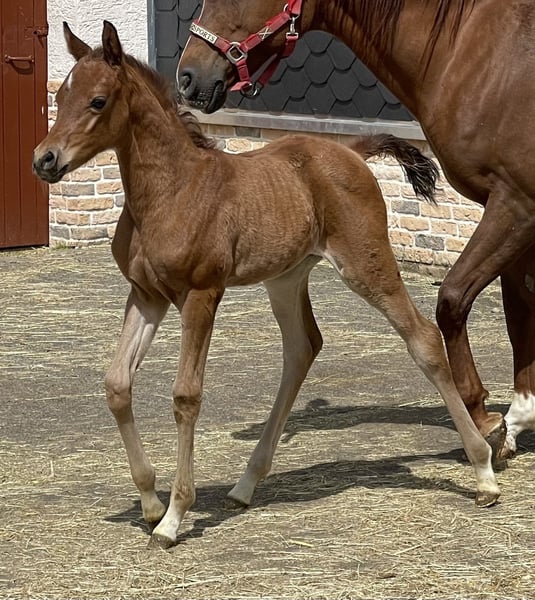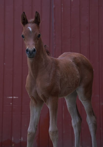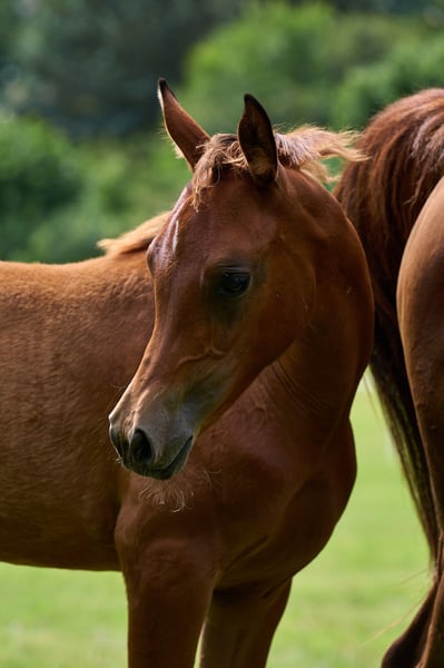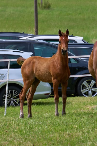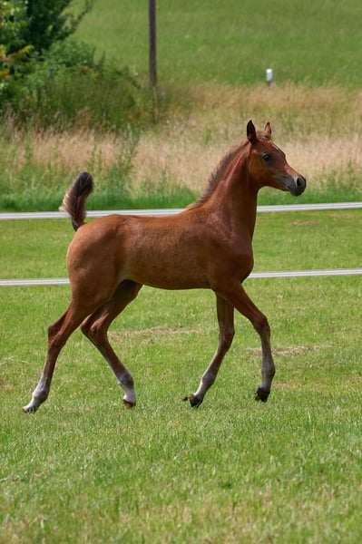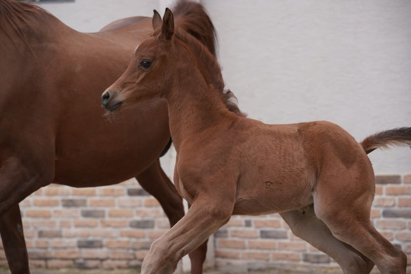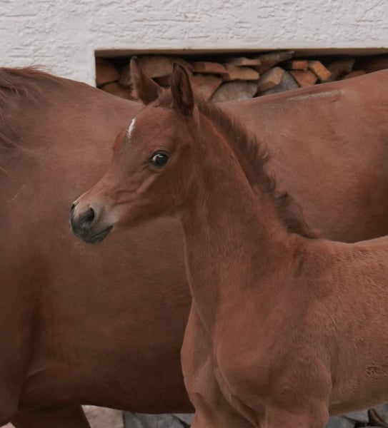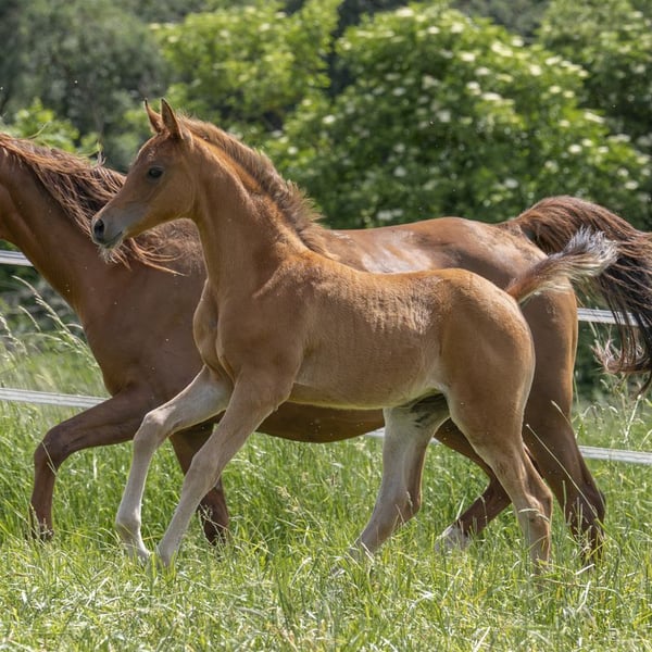 After two colts from the same mating, we wanted this filly. Malenica (premium) is a Magic Man daughter and a Kamerton granddaughter. Makemba is out of Matrika, who was our foundation mare together with Marenah. Almost all the horses on our farm come from this dam line. This foal therefore perfectly embodies the result of our breeding. We are delighted that this little mare is almost perfect in our eyes, if there is such a thing. She has a great body with lots of neck and uprightness, she is full of type and can move. Presence and charisma, plus a curious and open-minded nature. Malenica is not a product of chance. She has two top-class full brothers and several half-siblings, all of whom are convincing in their quality. Her sire, A Magic Man of Kossack, is a Verband premium stallion and was the Verband's top-rated stallion two years in a row. Under saddle he is rideable and willing to lead. She was bred with the aim of becoming a good riding or breeding horse with a clear Arabian appearance. Like all our young horses, she grows up robust with plenty of exercise, little concentrated feed and lots of basic feed. In summer, our young horses are out in the pasture 24 hours a day. They learn to deal with sun, wind, rain and insects right from the start. Further information on the Vogelsberg Arabian homepage. Photos Marixx Film & Photography, Maria Sens