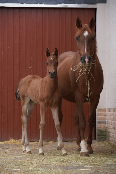 Na twee veulens uit dezelfde dekking wilden we dit merrieveulen. Malenica is een Magic Man-dochter en een Kamerton-kleindochter. Makemba komt uit Matrika, die samen met Marenah onze stammoeder was. Bijna alle paarden op ons bedrijf komen uit deze moederlijn. Dit veulen belichaamt dan ook perfect het resultaat van ons fokprogramma. We zijn erg blij dat deze kleine merrie in onze ogen bijna perfect is, als er zoiets bestaat. Ze heeft een geweldig lichaam met veel hals en opgerichtheid, ze is vol type en kan bewegen. Aanwezigheid en uitstraling, plus een nieuwsgierig en onbevangen karakter. Malenica is geen product van toeval. Ze heeft twee volle broers van hoog kaliber en meerdere halfbroers en halfzussen, die allemaal overtuigen in hun kwaliteit. Haar vader, A Magic Man of Kossack, is een premiehengst van het Verband en was twee jaar op rij de best beoordeelde hengst van het Verband. Onder het zadel is hij rijdbaar en bereid om te leiden. Ze is gefokt met als doel een goed rij- of fokpaard te worden met een duidelijk Arabische uitstraling. Net als al onze jonge paarden groeit ze robuust op met veel beweging, weinig krachtvoer en veel basisvoer. In de zomer staan onze jonge paarden 24 uur per dag in de wei. Ze leren vanaf het begin omgaan met zon, wind, regen en insecten. Meer informatie op de Vogelsberg Arabian homepage. Foto's Marixx Film & Fotografie, Maria Sens