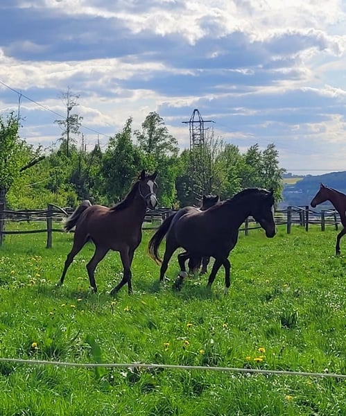 Unsere schöne Medina ist sehr korrekt und harmonisch gebaut, mit raumgreifenden Bewegen und toller Abstammung. Da wir unseren Bestand verkleinern müssen, hoffen wir, dass sie bei jemandem ihre Bestimmung findet und zur Pferdeliebe des Lebens wird. Sie liebt es, Zeit mit ihren Menschen zu verbringen und zB Bodenarbeitsübungen zu erlernen oder Spaziergänge zu unternehmen. Trotz ihres jungen Alters, kennt sie Offenstall - Boxen und Weidehaltung. Aber natürlich auch regelmäßige Wurmkuren und den Hufschmied. Durch ihre Aufzucht im Herdenverband, ist sie super sozialisiert. Neuen Dingen ggüber ist sie sehr aufgeschlossen und von Anbeginn gehörte sie bei uns zu der Gruppe Fohlen von speziell coolem Charakter. ( cooler selbst als ihre Mutter und Großmutter:) Medina eignet sich perfekt für jemanden, der ein aufgeschlossenes und anhängliches Seelenpferd sucht - egal, ob für sich allein oder die ganze Familie! Gern bieten wir eine Kombination von Teil - und Ratenzahlung an. Transport in ihr neues Zuhause kann auf Wunsch angeboten oder organisiert werden Wir freuen uns auf Anfragen und Besichtigungstermin Vereinbarungen, bitte mit vollständigem Namen und Wohnort ( ü18!) Die Schnappschüsse zeigen Medina, in verschiedenen Altersstufen ( und ihre Eltern und Großmutter. Fotos von G.Aymar, C.Carrera, SiR, A.Sagrabelny )