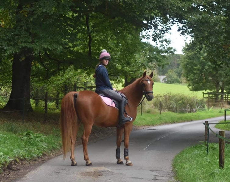 Wunderschöne 7-jährige Vollblutaraberstute – Fuchs mit Flaxenmähne – ca. 15 hh MJM FLASH DANSE („Flash“) ist eine beeindruckende Vollblutaraberstute mit auffälliger fuchsfarbenen Fell und eleganter Bewegung. Sie ist gut ausgebildet, sensibel und leicht zu reiten. Flash geht sicher im Schritt, Trab und Galopp, ist weich im Maul und besitzt ein ruhiges, ausgeglichenes Temperament – weder heiß noch reaktionsfreudig. Seit vier Jahren wird sie regelmäßig von einem erfahrenen Juniorreiter geritten. Für Reiter mit mittlerem bis fortgeschrittenem Niveau geeignet. Sie zeigt Talent als Jagd- oder Springpferd (bis 2’–2’6”), kann sowohl im Englisch- als auch im Westernstil geritten werden und verfügt über Erfahrung im Dressurviereck, kleinen Sprüngen, Trail, Stangenarbeit und Grundmustern. Auch im Umgang mit Weidetieren ist sie zuverlässig. Ausgezeichnetes Benehmen: Kein Buckeln, Rückwärtsgehen, Durchgehen oder Beißen. Steht ruhig, lässt sich gut verladen und ist beim Hufschmied freundlich. Preis: 3.400 GBP – Transport kann organisiert und verfolgt werden. 📲 Kontakt per WhatsApp: +44-74414-24448