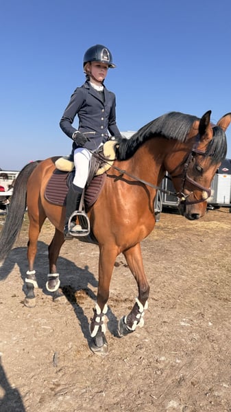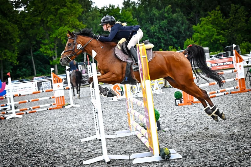 Oferuję na sprzedaż 8 letnią (27-02-2018), gniadą klacz czystej krwi arabskiej o imieniu OSA po Kuheilaan Aafas Maidaan i Owidji. Wzrost 155 cm nr konia K039737 w Livejumping Klacz idealna dla dziecka, juniora do nauki skoków, wprowadzenia w pierwsze starty lub dla osoby dorosłej o drobnej budowie. Koń, który większość zawodów był na podium. Kocha wygrywać i kocha rywalizację. Jeśli szukasz konia ładnego, o miłym chrakterze, grzecznego, to Osa to koń idealny. Koń będzie dodawał pewności przy skokach, pomoże w rozpoczęciu kariery sportowej. Nigdy się nie zatrzymała przed przeszkodą, odbija się z każdego dystansu i nie zraża się do skoków. Osa jest koniem równo galopującym, szybkim i zwrotnym, który jest idealny do wygrywania. Jest grzeczna, nie sprawiająca problemów, bardzo lubi skakać. Koń regularnie jest padokowany ( w stadzie jak i sama), chodzi bezproblemowo w karuzeli, chodzi w teren sama jak i w grupie a także z osobą na rowerze. Łatwa w zabiegach pielęgnacyjnych np. kąpiel lub solarium. Nie robią na niej wrażenia żadne kolorowe przeszkody, podmurówki, woda, ruch wokół parkuru. Bezproblemowa w transporcie i przy kowalu. Kuta na przody. Regularnie odrobaczana i szczepiona dwa razy w roku. Pod opieką fizjoterapeuty. Regularna opieka dentysty. Nigdy nie chorowała, nie miała kontuzji. Koń jest z nami od 03/2023 i został od początku przez nas wszystkiego nauczony. Rozpoczęła starty w skokach w 10/2023 i od tego czasu regularnie startuje. Obecnie na poziomie 90/100 cm. Tylko do dobrego, kochającego domu. Nie do szkółki rekreacyjnej. Szukamy osoby, która będzie ją kochać. Startowała w Sileasia Jumping Cup 2025 wygrywając finał, Summer Cup Finał Mężyński RC Sosnowice 2024 zajmując pierwsze miejsce. Startowała w Halowych mistrzostwach Śląska w 2024, Mistrzostwach Śląska w skokach przez przeszkody 2025 Radzionków. Była na zawodach w Prudniku, Opolu, Lesznie, Bogusławicach, wiele razy w Sarnowie, Lando, Radzionkowie, Zbrosławicach, Sosnowicach.