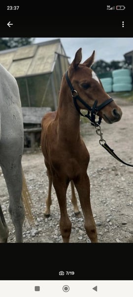 Verkauft wird ein wunderschönen Stutfohlens mit Zwei Sterne Fohlenprämie. Wir freuen uns, Ihnen ein wunderschönes Vollblutaraber Stutfohlen aus diesem Jahr mit vollen Papieren vom ZSAA anzubieten. Dieses bezaubernde Stutfohlen stammt von einem Vollblutaraberhengt, der erfolgreich am 30-Tage-Test in Handorf teilgenommen hat und durch seine ausgezeichneten Eigenschaften überzeugt ab. Die Mutter des Fohlens hat eine Verbandsprämie erhalten und ist auch mit über 20 Jahren noch äußerst fit und sie ist eine wahre Seele von einem Pferd. Unser Stutfohlen wurde regelmäßig entwurmt, hat bereits positive Erfahrungen beim Hufschmied gesammelt und wächst glücklich im Herdenverband auf den Wiesen auf. Es zeigt ein aufgewecktes und ausgeglichenes Wesen, perfekt für zukünftige Herausforderungen. Altersentsprechend ist es komplett roh und bereit, vielseitig gefördert zu werden. Endmaß des Fohlens vorraussichtlich ca. 155 cm. Wir sind nicht nur auf der Suche nach einem Käufer, sondern nach den idealen Menschen, die diesem besonderen Stutfohlen ein liebevolles Zuhause bieten können. Gerne auch an Züchter abzugeben. Bei Interesse freuen wir uns sehr über Ihre Nachricht! Für weitere Fragen oder zur Vereinbarung eines Besichtigungstermins stehen wir Ihnen gerne zur Verfügung.