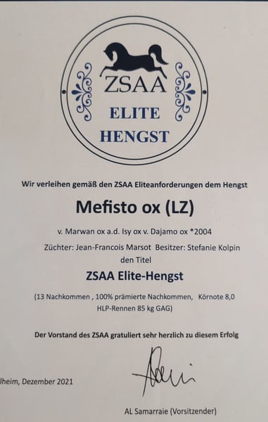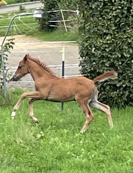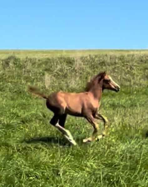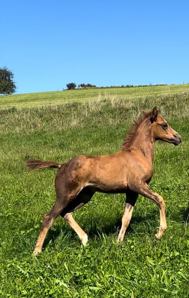 Samee ist der erste verkäufliche Aratang (Araber x Mustang) aus unserer kleinen aber feinen Distanzpferdezucht. Die besten Eigenschaften aus Leistungserprobten Vollblutaraber und Mustang Elterntieren vereint. „Der Aratang erträgt den Hunger, er erträgt den Durst und wird niemals müde“. Samee ist kerngesund und quietsch lebendig, Mitte August 2025 geboren und könnte im März 2026 ihre Mutter verlassen. Sie ist durch und durch ein korrektes,gesundes und für den Reitsport vielversprechendes Fohlen. End-Stockmaß ca. 158cm+ . Sie verliert gerade ihr Fohlenfell und wird Dunkelfuchs. Färbung und Abzeichen entsprechend dem des Vollbruders (Impact) des Vaters ( Mefisto). Mefisto (Elitehengst) steht bei uns im Stall und ist ein gekörter - leistungs-und rennbahngeprüfter VA Hengst. Sein Vollbruder Impact (Goldpämierung ZSAA) ist ebenfalls ein sehr erfolgreicher VA Hengst im Distanz-und Rennsport. Samee‘s Mutter (Sitara) ist eine Mustangstute die wir im Alter von 3,5Jahren aus Amerika (South Steens Herde) roh importiert haben. Sitara hat nun bei uns ihr zweites Fohlen geboren. Sie ist jetzt neun Jahre alt und ist bisher 3000 Distanz-Wettkampfkilometer gelaufen. Sie bekam steht’s Lob - Bestnoten von den Tierärzten und hat makellose Checkkarten. Ansonsten glänzt sie bei uns außerdem in der klassischen Dressur und in der Working Equitation - ein richtiges Ausnahmepferd. Charakterlich ist Sitara einwandfrei und eine fürsorgliche Mutterstute. Ihre erste Tochter gewann vor kurzem, dass VDD Bundes Championat der 5jährigen Distanzpferde in Bitz mit hervorragenden Bewertungen. Wir würden sie am liebsten an einen ambitionierten Endurancereiter verkaufen, um den sportlichen Erfolg unserer kleinen Zucht, weiterverfolgen zu können.