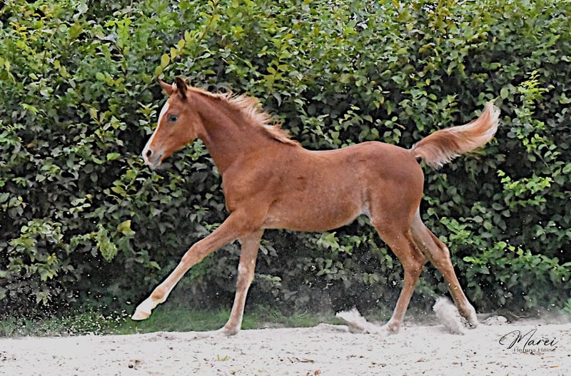 RA Sahib was foaled on June 9, 2025. His sire is a son of the legendary Al Lahab. His dam carries bloodlines from DP Black Smoke and Joka Tuam. Sahib has received the foal premium from VZAP. He is a curious foal who loves to be groomed and brushed. He can move to a new home at the beginning of next year.