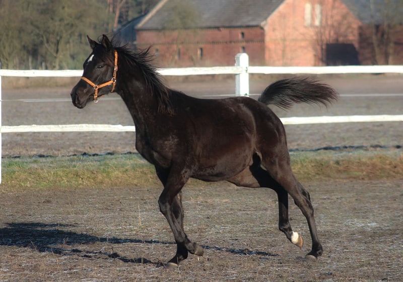 Joli poulain de 1 an, entier, noir, homozygote par ascendance, à la recherche d’un nouveau foyer. Il est grand et puissant, avec un corps solide et correct, et des mouvements PHÉNOMENAUX avec une phase de suspension exceptionnelle !!! Dakarro est né en tant que poulain très grand et fort, sa taille finale estimée sera certainement de 160 cm ou plus !!! Pedigree intéressant Ligne paternelle : Kuhailan Afas ou.ar. 1930, importé en 1931 de Gumniska (PL) Ligne maternelle : Hadba ou.ar. 1899, importée en 1906 de H. Davenport (US) Son pedigree comprend des noms célèbres tels que Simeon Sadik, The Desperado, Ali Jamaal, Bei Shah, Alegro, Probat, PALAS et bien d’autres... Attitude très expressive. Parfait pour la reproduction, le show ou l’endurance / le saut – il possède l’une des meilleures lignées d’endurance jamais enregistrées (Wagram****). Inscrit au PASB. WhatsApp +48 513 179 245