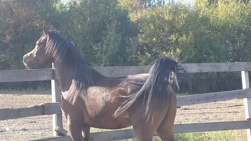 For sale: a 2-year-old purebred Arabian stallion. Neptunus, born January 2023. Sire: Messico (Nadi Al Khalediah) Dam: Nemenzis SG (Etnodrons Psyche) The stallion is healthy, calm, and easy to handle. Registered with PASB, with passport, DNA testing, and microchip. The last photo shows the stallion's dam (Nemenzis SG). WhatsApp: +48 (0)693861913