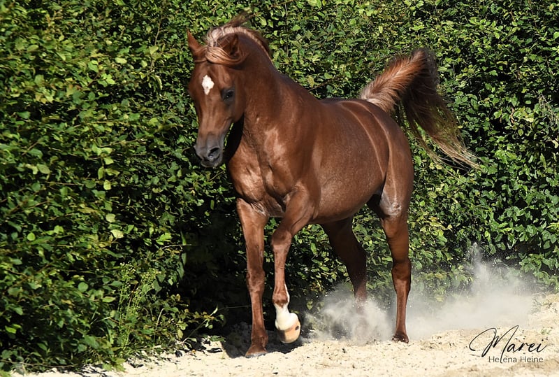 Letzter Sohn des legendären Al Lahab aus einer WH Justice Mutter. Beim VZAP mit der weißen Schleife ausgezeichnet und eingetragen. Er hat bisher 3 Fohlen, die alle vom VZAP mit der Fohlenprämie ausgezeichnet wurden.
