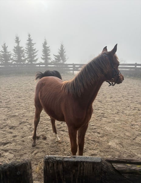 Schweren Herzens steht ein ausdrucksstarkes, elegantes Araber Hengst - Fohlen, geboren Februar 2025. Equidenpass vorhanden, Vater Exagon OS zum Verkauf. Aufgrund eines Schicksalschlages und starken Veränderungen im neuen Jahr suche ich schweren Herzens für mein Goldstück ein 5 Sterne zuhause! Keine Händler oder sonstiges. Er überzeugt mit einem Charakter aus Gold, wunderschönen Gangarten und einer wunderschönen Fellfarbe. Er bringt alles mit was man sich wünscht. Er kennt das Fohlen ABC, ist halfterführig und lässt sich ohne Probleme anfassen und kuscheln. Gegebenenfalls auch für die Zucht interessant, als Distanzpferd oder als Freizeitkumpel. Altersbedingt ist er aufgeweckt, voller Energie, neugierig und verspielt. Er ist super clever und setzt neue Sachen schnell um. Er kennt Boxenhaltung und Offenstall. Verträglich in der Herde. *Kleiner Makel am rechten Hinterbein. Momentan heilt dort noch eine Wunde, diese wird jedoch nicht mehr behandelt und ist nur noch oberflächlich. Er hat jedoch keine Einschränkungen oder bleibende Schäden. Lediglich ein närbchen. Wurde in der Klinik geröntgt. Mit ist sein neues zuhause sehr wichtig. Ich wünsche mir für ihn ein Ort wo er sich ordentlich austoben kann mit großen Koppeln und Menschen die ihn lieben und gut versorgen. Idealerweise mit spielkumpeln und einer artgerechten Haltung. Bei Interesse gerne anschreiben und vorbeikommen! Videos können gerne per WhatsApp verschickt werden. Mir wäre es sehr wichtig das er schnellstmöglich umziehen kann.