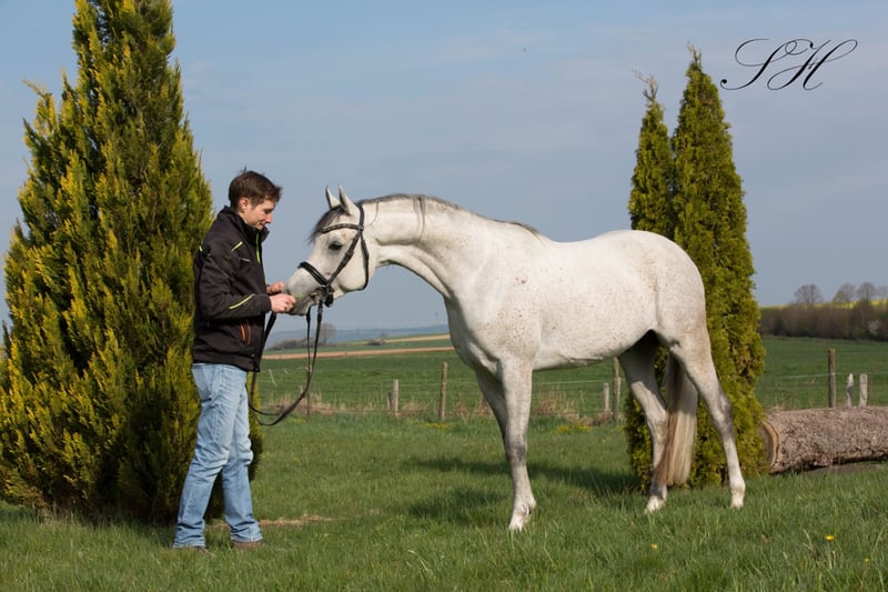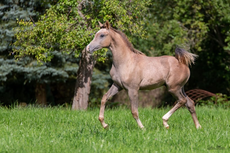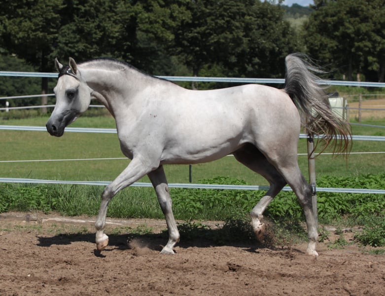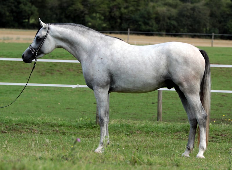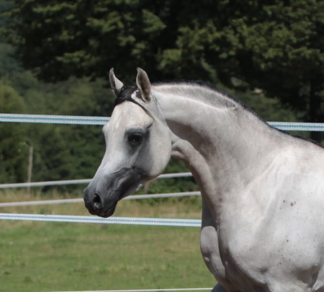 This promising young stallion has so far achieved everything that can be achieved at his age. He became the best stallion of the 2020 vintage at the VZAP with the dream grade 8.5. He was ridden three years old and caught in February 21. His first two foals were both presented. It is typical, can move and has a very harmonious body construction. In the Trab he swings loosely through the whole body. His character is balanced, but lively and attentive. His first two foals have pr?senz, alignment, expansive movements and a very pleasant character. He has also passed on his frame and long-leggedness to both sides. For more information, see www.vogelsberg-araber.de Photos Sabine Althaus