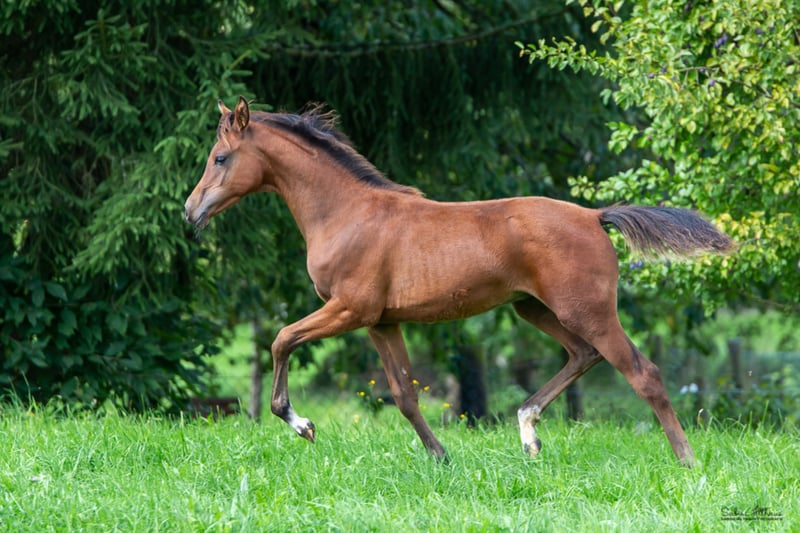 Ten obiecujący młody ogier do tej pory osiągnął wszystko, co można osiągnąć w jego wieku. Stał się najlepszym ogierem rocznika 2020 w VZAP ze wymarzoną klasą 8.5. Jeździł trzy lata i został złapany 21 lutego. Zaprezentowano mu dwa pierwsze źrebięta. Jest typowy, może się poruszać i ma bardzo harmonijną budowę ciała. W Trabie huśta się luźno przez całe ciało. Jego postać jest zrównoważona, ale żywa i uważna. Jego pierwsze dwa źrebięta mają pr?senz, wyrównanie, ekspansywne ruchy i bardzo przyjemny charakter. Przekazał również swoją ramę i długonogość na obie strony. Aby uzyskać więcej informacji, zobacz www.vogelsberg-araber.de zdjęcia Sabine Althaus