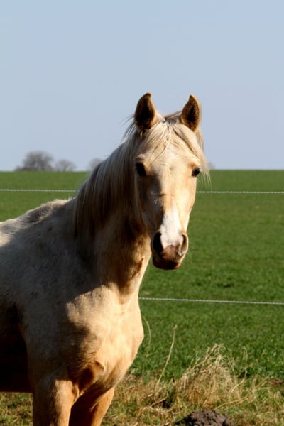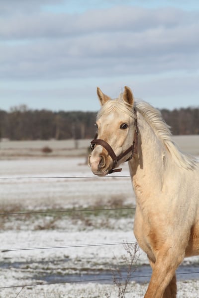 MSA Nadim *Prämienfohlen 2023* Partbred Araber 95,95 % AV Palomino geboren 31.03.2023 z.Zeit 154 cm Geschlecht: Wallach MSA Nadim ist ein vielversprechender Arabisch Partbred Wallach aus hochwertiger, leistungsgeprägter Anpaarung. Er verfügt über einen ox-Anteil von 95,95 %. Sein Vater ist der Vollblutaraberhengst Osborne ox, seine Mutter die Arabisch Partbred Stute Sweet Fairy in der Farbe Smoky Black Schecke. Nadim präsentiert sich in der seltenen Farbe Fuchsisabell (Palomino) und überzeugt durch ein edles, harmonisches Exterieur mit klarer arabischer Ausstrahlung. Er wurde mit der Fohlenprämie ausgezeichnet. Charakterlich zeigt er sich sehr souverän, freundlich und ausgeglichen. Er ist regelmäßig entwurmt und gegen Tetanus geimpft. Er kennt er den Longiergurt und wurde vorsichtig anlongiert. Verladen, Schmied sowie alltägliche Abläufe eines landwirtschaftlichen Betriebs ( Traktoren, Kühe usw.) sind ihm vertraut. Auch in neuen Situationen bleibt er ruhig, aufmerksam und kopfklar. Derzeit misst er etwa 1,54 m Stockmaß und ist altersgemäß korrekt entwickelt. Er befindet sich in artgerechter Aufzucht und bringt sehr gute Voraussetzungen als zukünftiges Sport- oder Freizeitpferd mit. Weitere Informationen werden bei ernsthaftem Interesse gern zur Verfügung.