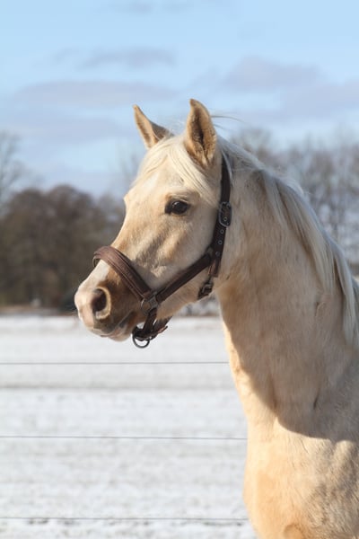 MSA Nadim *Premieveulen 2023* Partbred Arabier 95,95 % AV Palomino Geboren op 31-03-2023 Huidige hoogte: ongeveer 1,54 m Geslacht: ruin MSA Nadim is een veelbelovende Arabisch Partbred ruin uit een hoogwaardige, prestatiegerichte afstamming. Hij heeft een ox-percentage van 95,95 %. Zijn vader is de vollebloedarabierhengst Osborne ox, zijn moeder de Arabisch Partbred merrie Sweet Fairy in de kleur Smoky Black Schecke. Nadim presenteert zich in de zeldzame kleur Fuchsisabell (Palomino) en overtuigt met een elegant, harmonisch exterieur met een duidelijke Arabische uitstraling. Hij is bekroond met de veulenkampioensprijs. Charakterlijk toont hij zich zeer zelfverzekerd, vriendelijk en evenwichtig. Hij is regelmatig ontwormd en gevaccineerd tegen tetanus. Hij kent de longeerlijn en is voorzichtig aangeleund. Laden, hoefsmid en alledaagse handelingen op een boerderij (tractoren, koeien, enz.) zijn hem bekend. Ook in nieuwe situaties blijft hij kalm, oplettend en helder van geest. Hij meet momenteel ongeveer 1,54 m schoft en is leeftijdsadequaat correct ontwikkeld. Hij wordt op een diervriendelijke wijze opgevoed en beschikt over uitstekende eigenschappen als toekomstig sport- of recreatiepaard. Bij serieuze interesse worden verdere informatie graag verstrekt.
