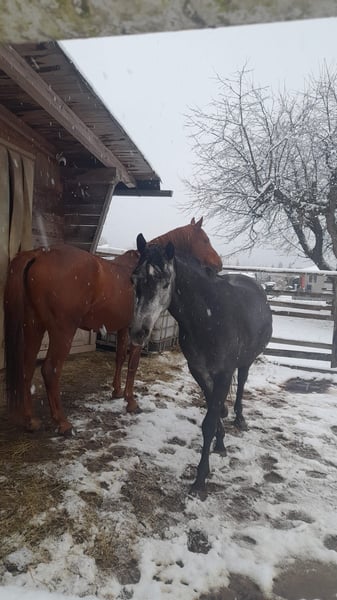 Verkaufe jungen arabischen Partbred-Wallach, geb. 2021, in elegantem Schimmel. Mit einem Stockmaß von 146 cm ist er perfekt für den Freizeitbereich geeignet. Der Wallach ist noch fast roh, es wurde erst angefangen zum arbeiten, zeigt viel Potenzial für den vielseitigen Einsatz. Ideal für Reiter, die ein zuverlässiges und charmantes Pferd suchen, das sowohl im Gelände als auch in der Freizeit eine gute Figur machen würde.ist jedoch kein Anfängerpferd, sehr dominant und sensible, leider Sommerekzemer. Platz vor Preis. Steht mit einem Hengst auf der Koppel, braucht definitiv Männliche Gesellschaft zum Spielen. Bei Interesse stehe ich gerne für weitere Informationen und eine Besichtigung zur Verfügung.