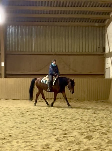 ⚜️Herzensangelegenheit⚜️ ,,Theo“ - Pintoaraber/ Reitpony Mix - Geb. 03.07.2020 - Stockmaß: 153 cm - Mutter: Louise – Reitpony - Vater: Taza Bajan (Leistungshengst) – Pintoaraber - AKTUELLE AKU liegt vor . - 3-monatige Westerngrundausbildung beim Profi, MJ Performance Horses/ Michael Jahnke (Januar 2024 bis Anfang April 2024) - seit Juni 2025 wieder im Profiberitt bei Belle Air Quarter Horses Theo wuchs bis 2,5-jährig bei seinem Züchter, sehr familiär und unter besten Voraussetzungen auf. Danach kam er zu seiner jetzigen Besitzerin, die sich schon als Fohlen in ihn verliebt hatte. Hier wurde er im Dezember 2022 kastriert. Bevor Theo eingeritten wurde, war die Besitzerin viel mit ihm im Gelände spazieren und das hauptsächlich allein. Er wurde von Anfang an, beim Züchter und seiner Besitzerin, immer gehegt und gepflegt. Theo ist ein bildhübscher, stämmiger Kuschelbär (aber kein Gewichtsträger!). Er ist im ganzen Umgang, beim Schmied (4-fach beschlagen), Tierarzt und beim Verladen, absolut unkompliziert. Er ist sehr sozial anderen Pferden gegenüber, immer freundlich und offen. Theo kam zu uns zur weiteren Ausbildung, da er aufgrund von Zeitmangel ca. 5 Monate sein Leben auf der Koppel genossen hat (wurde aber trotzdem täglich gehändelt und verpflegt ). Er ist super lernwillig und mag die Arbeit und Abwechslung. Wir hatten allerdings im Training gemerkt, dass er nicht so gute Fortschritte machte und immer wieder „Probleme“ zeigte, sich tragen und über den Rücken zu arbeiten. Daraufhin haben wir ihn röntgen lassen, wo leider herauskam, dass seine Dornfortsätze nah beieinander liegen. Um alles auszuschließen, liegen auch Röntgenbilder der Sprunggelenke vor. Seitdem trainieren wir Theo spezifischer, mit dem Augenmerk Rückenaufbau vom Boden, aber auch von oben. Er ist beim Reiten brav und zeigt keine Unarten. Nach seiner Grundausbildung ging er hauptsächlich mit seiner Besitzerin ins Gelände und das überwiegend allein. Durch seinen Befund ist es uns sehr wichtig eine Person zu finden, die sich wirklich mit ihm beschäftigt, Erfahrungen hat und ihn weiter fördert, nur dann wird man langfristig viel Freude mit ihm haben können. Jemand der auch Erfahrung und Spaß an der Bodenarbeit hat und sich mit ihm auch weiterbilden oder auch zu Kursen fahren möchte. Theo ist, wenn er einmal Vertrauen und Sicherheit gefasst hat, ein absoluter Kumpeltyp und Herzenspferd, der einen dann immer freudig begrüßt, sobald man in den Stall oder auf die Koppel kommt. Er kennt bis dato nur 24/7 Heu / nachts in der Box und Tagsüber auf der Weide und auch nur mit Wallachen (Stuten nicht getestet). Wir können uns auch vorstellen, das Theo in einem kleinen, gut geführten Offenstall mit beständiger Herde, sich wohlfühlen würde. Seine Besitzerin gibt ihn nur ab, weil sie Theo nicht das Training bieten kann, was er benötigt und ihn auch dahingehend nicht so fördern kann, wie er es brauch. Es fällt ihr unheimlich schwer und deswegen suchen wir für ihn das absolute 5 Sterne zu Hause, mit Familienanschluss, wo er genauso geliebt, gehegt und gepflegt wird, wie es bis jetzt der Fall war. Video : https://youtube.com/shorts/I7FU4-czJ4w?si=eZ1-XxykAwGo99B_ Für ein Probereiten nehmen wir uns gerne Zeit & berechnen 40€ .