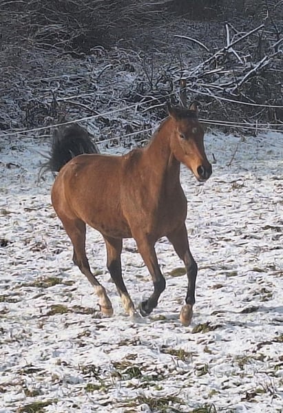 Annuncio di vendita: Castrone Arabo Partbred Versatile (2020, Baio, 165 cm) Viene venduto un promettente castrone Arabo Partbred, nato nel 2020. Con il suo aspetto elegante e un'altezza al garrese di 165 cm, combina l'eleganza tipica degli Arabiani con un potenziale polivalente di impiego. È stato regolarmente vaccinato ed ha un carattere amichevole e affettuoso. Nino è stato leggermente iniziato alla monta, ma dall'autunno scorso è di nuovo al pascolo con i suoi amici e viene quindi venduto come grezzo. Se interessati, saremo lieti di ricevere il vostro contatto per discutere ulteriori dettagli e organizzare una visita.