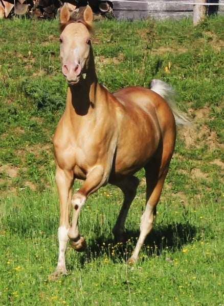 Painted Sensation Partbred arabe avec 79,688 % AV Taille au garrot : 153 cm Inscrite au stud-book de l'ÖAZV Elle a été jusqu'à aujourd'hui utilisée en reproduction chez nous et a donné d'excellents poulains. Comme nous avons conservé sa fille, je souhaite confier Painted Sensation à une nouvelle famille qui lui offrira un foyer merveilleux ! C'est une jument baie champagne avec un marquage en blanc, née le 20 mai 2013. C'est une excellente mère et elle a toujours été facile à faire monter ! Cependant, il ne serait absolument pas difficile de la former en cheval de loisir, car elle est très facile à vivre. Painted Sensation connaît la box, le paddock et la pâture 24h/24, où elle se montre très sociable et sûre dans le groupe. Actuellement, elle n'est pas gestante.