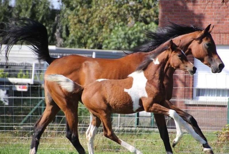 Beautiful mare foal Rose is well-versed in her foal alphabet, moves neatly, allows grooming, easily gives her four legs, and can stand still. Harmoniously built foal, nicely colored We estimate her height at around 1.55 m (16.1 hh). She comes with AES registration papers and is already allowed to leave her dam. About her parents: Her sire is Reddy Wally Ter Linden (son of the CCI4* eventing stallion Eddy Wally by Querlybet Hero), who competed internationally in eventing at 2-star level and in CSI 1.25m show jumping. Her dam is one of the few direct Padrons Psyche offspring in Belgium; her mother is a daughter of QR Marc, with a super gentle and calm temperament, very easy to handle, and with beautiful gaits. Nice lines for an all-round horse with the necessary stamina for recreation, jumping, dressage, eventing, endurance, and ground work. We would love to hear from a home where we can get updates on her 😉 Asking price: €3,500 Who’s ready to start working with her?