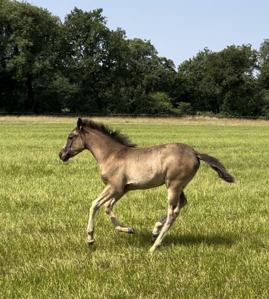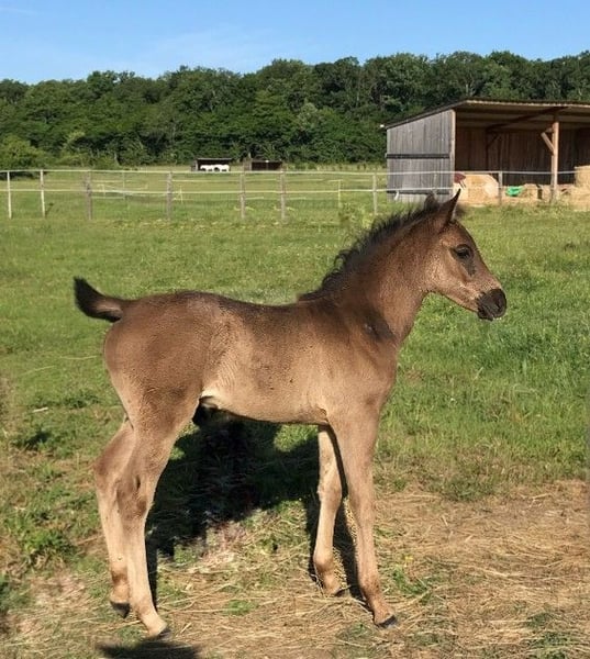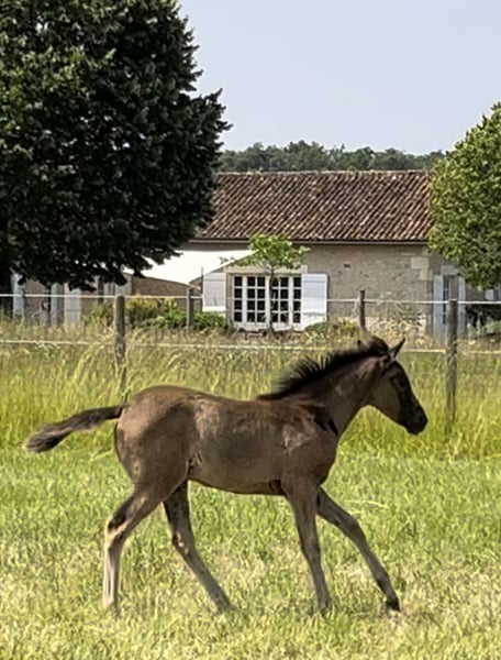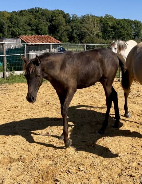 Nacida a finales de marzo de 2025, AYA es una hermosa potranca hispano-árabe, con un físico más típico de la raza española que de la árabe. Su cuerpo compacto y musculoso será un punto fuerte. Su bonita cabeza, llevada por un cuello corto y bien orientado, le da un aspecto muy armonioso. Esta potranca se muestra curiosa, decidida y disfruta del contacto con las personas. Tiene mucho equilibrio y es muy ágil. Sus pasos y trotes son elevados y enérgicos, y su galope es redondo. Por su manera de andar y su morfología, será apta para la Doma Vaquera, el adiestramiento y, al igual que su madre, muy versátil. Medirá entre 1,50 y 1,55 metros de altura. Como todos los potros, está manipulada, vacunada, desparasitada y complementada. Criada en grupo, será destetada de forma tardía, pero ya puede ser reservada. Su precio variará según su edad y el progreso en su entrenamiento. Varios otros caballos están disponibles para la venta en la finca. No dudes en consultar la página del «Haras del Gremillón» y en contactar por SMS para más información.