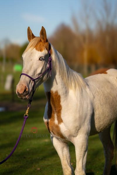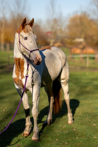 🌟 Niagara Faux Miroir 🌟 Unique appearance! A 2.5-year-old mare with presence and quality! Niagara Faux Miroir is a 2.5-year-old mare standing approximately 1.55 m, still growing. Her coat is palomino pinto, and she has two symmetrical blue eyes. Niagara has an very interesting pedigree, making her also appealing for breeding purposes! She is suitable for both Western riding and dressage, and she also shows a nice jump. She is very respectful on the ground, human-oriented, and very curious; she does not spook easily. She is familiar with groundwork and clicker training. She understands the basics of lunging and canter over poles. She has correct gaits and dry tendons. Her sire is the well-known stallion Vanadoo Blue Eye, registered in the Cremello studbook. Her full pedigree is known. She comes from the breeding program of the renowned French breeder Alain Francart. No stable vices or other faults. We are looking for a caring, loving home where Niagara can continue to grow and develop.