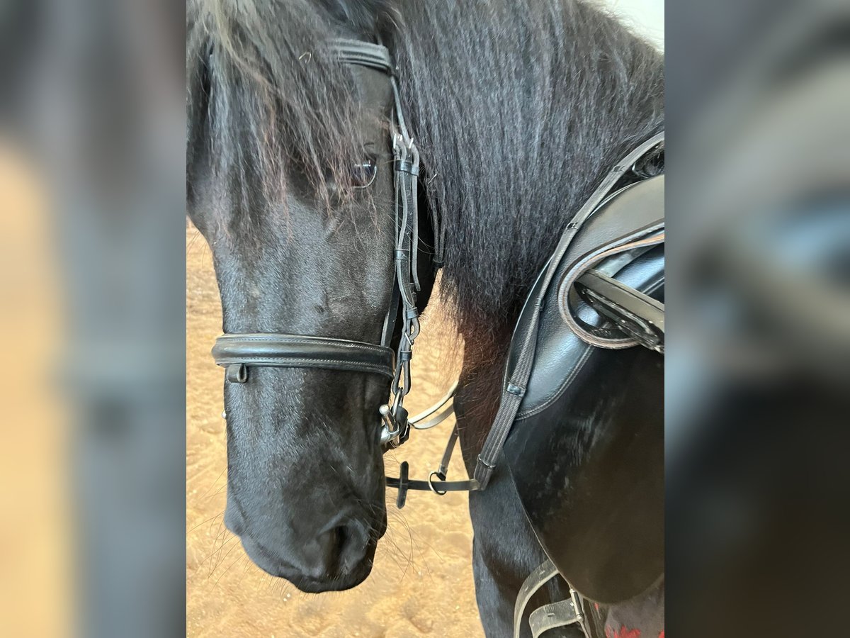 Elegante Arabofriese-Stute, geborene 2019, sucht ihren neuen Besitzer. Diese beeindruckende Rappstute vereint die edlen Linien des Arabofriese mit barockem Charme und einer imposanten Erscheinung. Mit einem Stockmaß von 160 cm präsentiert sie sich ausgewachsen und gut proportioniert, was sie zu einem echten Blickfang macht. Ihre barocke Konstitution verleiht ihr eine elegante Präsenz und eine beeindruckende Grundsubstanz. Die Stute ist gut geritten, zeigt eine solide Grundausbildung und überzeugt durch ihr freundliches Wesen sowie ihre Bereitschaft, Neues zu lernen. Dank ihrer rassetypischen Eleganz und ihres Charakters ist sie vielseitig einsetzbar – sei es im Freizeitreiten, im klassischen Dressurtraining oder für Zuchtzwecke. Diese Arabofriese-Stute ist ein echtes Highlight für jeden Pferdeliebhaber, der Wert auf Qualität, Charakter und eine beeindruckende Optik legt. Sie freut sich auf eine neue Familie, die ihre besonderen Qualitäten zu schätzen weiß.