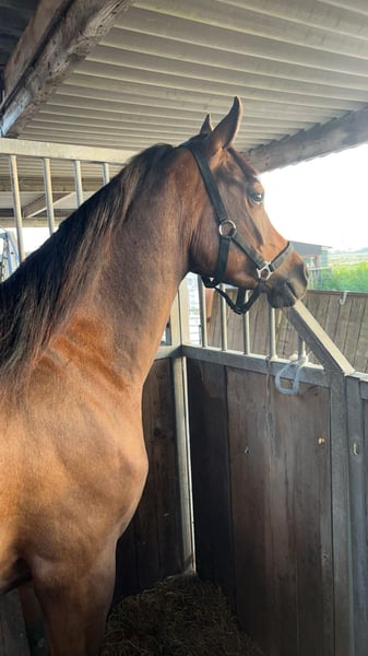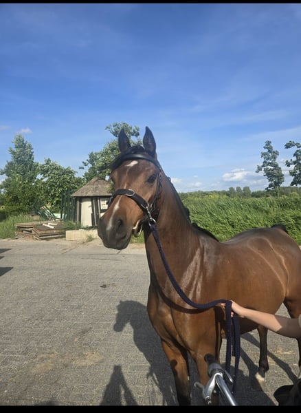 Onze 4 jarige ruin te koop omdat hij te klein is voor ons. Op dit moment is hij rond de 150 en ik 1,83 Afgelopen half jaar hebben we hem zadelmak gemaakt. Hij is op stal sociaal naar mens en paard. Als hij iets nieuws ziet is hij juist nieuwschierig en gaat hij er naar toe. Buiten rijden vind hij erg leuk en fietsen aan de hand ook. Arabisch stamboek, vader van is G. Basgier. MOET SNEL WEG