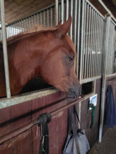 Wegen seines Senkrückens ist Talal nur sehr bedingt reibar. Ansonsten ist er unkompliziert und völlig gesund.
