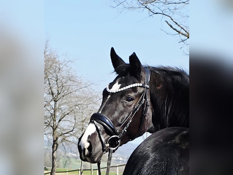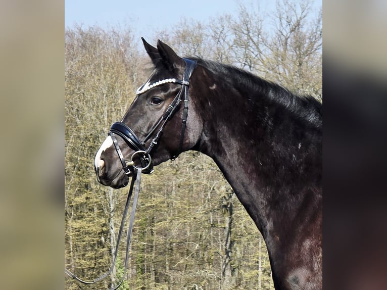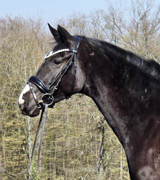 Die hübsche Bea stammt aus unserer eigenen Zucht! Bis zum Tag des Anreitens stand Bea ganzjährig drausen und konnte ihre Jugend in vollen Zügen genießen. Sie ist eine bildschöne Rappstute und bringt alles mit, was man für das große Viereck benötigt. Schon bei ihrem ersten öffentlichen Auftritt konnte sie direkt überzeugen und wurde 4. in einer Reitpferdeprüfung. Sowohl Verladen als auch der tägliche Umgang sowie putzen oder abspritzen meistert Bea problemlos. Ausgiebige Schmuseeinheiten geniest Bea auch sehr. Sie stammt aus einem hocherfolgreichen Mutterstamm. Die Mutter sowie weitere Geschwister stehen am Hof und können besichtigt werden. Bea verfügt über drei sehr gute GGA, angeritten, Röntgenbilder liegen vor, inkl Rücken und Hals, laut Tierarzt o.b.B. Sie hat einen kleinsten Chip, der laut Tierarzt keine Probleme machen sollte aber leicht zu entfernen wäre.