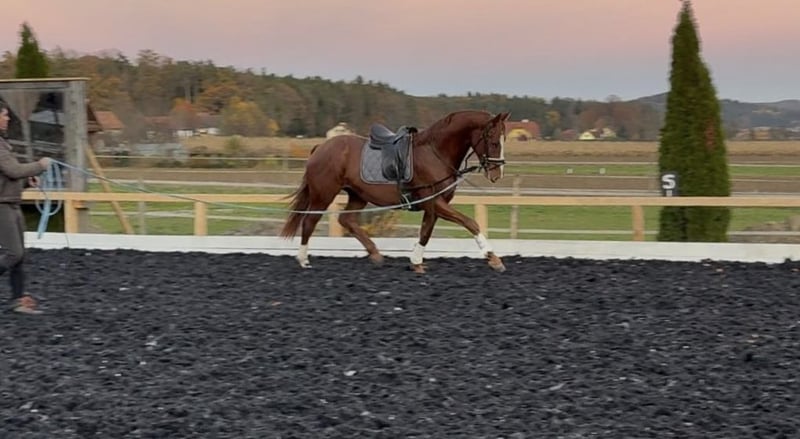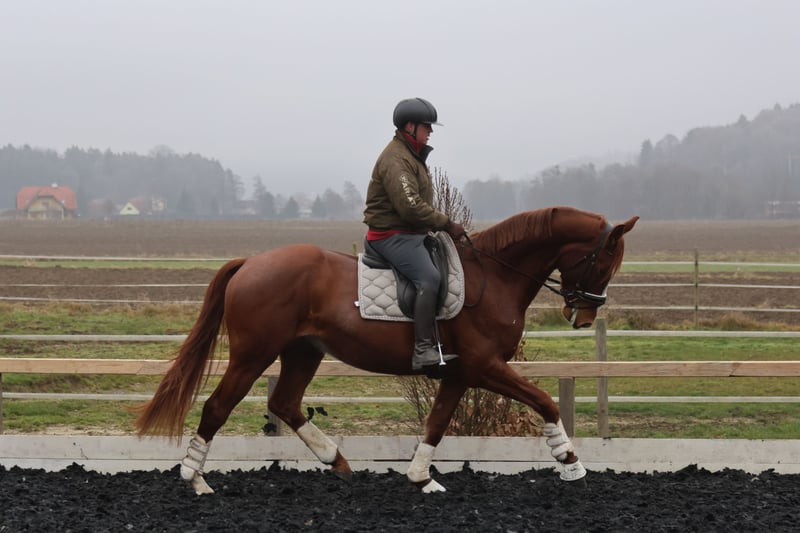 Oferujemy na sprzedaż wyjątkowego młodego wałacha, który posiada wszystkie predyspozycje do odniesienia sukcesów w sporcie ujeżdżeniowym. Viento, syn renomowanego ogiera Va Bene, już jako źrebię zrobił duże wrażenie podczas championatu, zdobywając w finałowej rundzie wyjątkową ocenę 9,5 za swoje ruchy. Jego podstawowe chody są ponadprzeciętnie dobre, a szczególnie wyróżnia się jego znakomity krok. Posiada także dynamiczny stęp oraz mocne kłusy, które świadczą o ich wysokiej jakości. Viento jest już delikatnie przygotowywany do przyszłych zadań – jest lonżowany i przyzwyczajany do ciężaru jeźdźca. Ze względu na jego wyjątkową jakość i potencjał, jego cena będzie rosła w miarę postępującej edukacji. Ten koń jest idealny dla ambitnych jeźdźców ujeżdżeniowych, którzy chcą samodzielnie wykształcić utalentowanego partnera od podstaw. To prawdziwy skarb z obiecującą przyszłością.