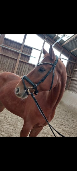 Der Wallach ist solide und korrekt angeritten, brav im täglichen Umgang und unkompliziert unterm Sattel. Er zeigt sich stets bemüht, lernwillig und aufmerksam gegenüber seinem Reiter. Die Ausbildung erfolgte altersgerecht und ruhig - eine