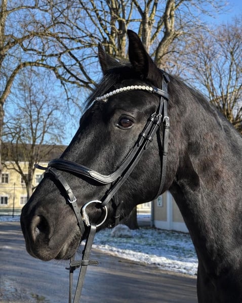For sale is a 2021-born black stallion sired by the S-winning Fürst Otto, from the successful Westphalian dam line 502. His granddam, the state premium mare Pola Negri, produced the Intermediaire I successful Dancing Diamond. Francesco himself was highly scored as a foal and left the regional foal championship as reserve champion with a score of 8.67 points. He is currently being prepared at the Austrian Horse Center for his first dressage competitions. A highly interesting and sensitive dressage prospect! Further information: +43 664 3867678