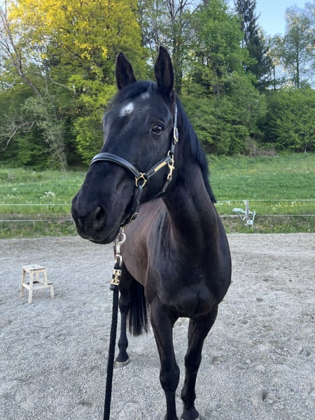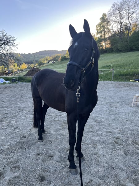 With a heavy heart, this handsome 8-year-old Austrian warmblood gelding is looking for a new home. Due to lack of time (two horses are simply too many in the long run), he currently cannot receive the attention and training he deserves. He stands approximately 1.67 meters (16.1 hh) and is a true “diamond in the rough”: he was ridden late and has only been ridden irregularly since, making him completely unspoiled. At the moment, he still shows some instability and needs an experienced rider who can provide him with confidence and promote him consistently yet gently – therefore, he is not suitable for beginners. Character-wise, he impresses with a heart of gold: friendly, honest, and very attentive to people. With the right training and regular work, he has all the qualities to become a reliable and wonderful partner. A loving home with time, patience, and joy in furthering his education and growing together is sought. If you are genuinely interested, I look forward to hearing from you.