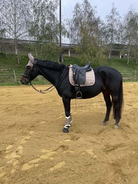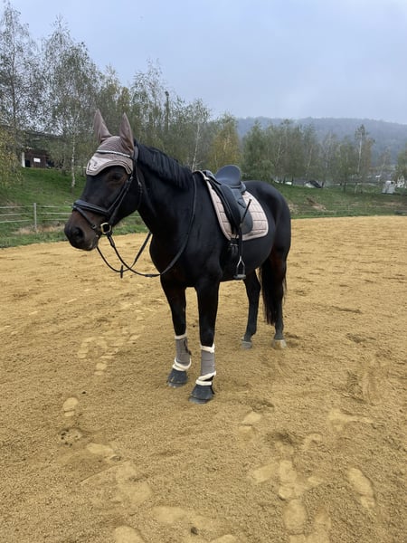 Alykessa is a very sweet 10-year-old Austrian Warmblood mare with a strong character, approximately 1.62 meters tall. She has been primarily trained in dressage but also enjoys regular rides in the forest and on varied terrain. She has competed successfully up to the medium level (LM) in dressage and is always reliable at competitions away from home. She has also participated several times in lead-rein classes. Additionally, she has experience in working equitation. She is familiar with and enjoys both solo and group rides. She has been occasionally jumped as a variety, and with active training, this skill could be further developed. Due to lack of time, we are selling Alykessa with a heavy heart and wish her a wonderful new home—hence, price is secondary to finding the right place for her. She is accustomed to various stable types: box stalls with paddock turnout, open stables, etc., and adapts very quickly. She is familiar with herds of mares as well as mixed groups. Tents and fixed stalls are no problem for her, making her suitable for competitions, trail rides, and similar activities. If desired, she can be sold with accessories at an additional cost. A health certificate (AKU) is available. We are happy to provide more information and videos upon serious interest! She has been in our care since she was 5 years old, initially as a riding pony for lease from the age of 3. Her previous owners, who raised her, are still personally known to us. We know her inside out.
