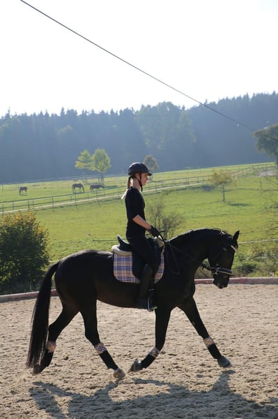 Schweren Herzens verkaufe ich aus Zeitmangel meine 13-jährige österreichische Warmblutstute „Watch Me“. (Stockmaß: ca 160 cm) Sie ist eine sehr motivierte, temperamentvolle Stute mit viel Go, vor allem in der kalten Jahreszeit und daher kein Kinder- oder Anfängerpferd. Sie braucht einen erfahrenen Reiter / eine erfahrene Reiterin auf Lizenzniveau, der/die ihr Sicherheit, klare Hilfen sowie eine konsequente und faire Führung bieten kann. Watch Me ist vielseitig einsetzbar und arbeitet gerne in der Dressur (bis L-Lektionen), genießt aber ebenso Bodenarbeit und entspannte Ausritte. Sie verfügt über Turniererfahrung (letzter Turnierstart 2020) und ist geländesicher. Im Umgang ist sie absolut unkompliziert: sehr verschmust, menschenbezogen und eine echte Seele von Pferd. 📍 Standort: Neuhofen im Innkreis/ Österreich Abstammung Vater: Hochadel Mutter: Whitney (Weltmeyer) Platz vor Preis. Nähere Infos gerne per Telefon.