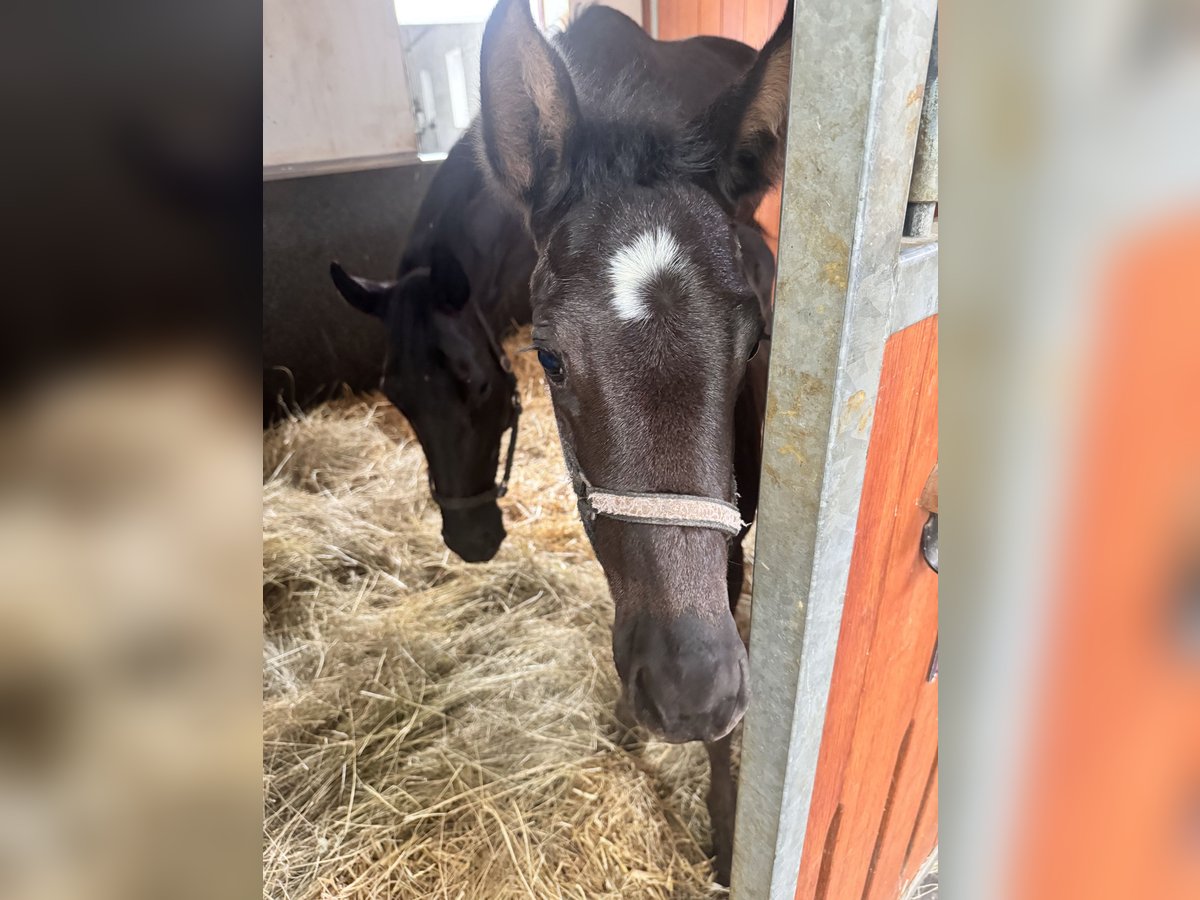 A promising young mare of the Austrian Warmblood breed is for sale. This elegant black mare, born in 2024, impresses not only with her modern appearance, but also with her great potential in dressage sport due to her elastic movement and excellent pedigree. With an estimated final height of 170 cm, she is ideally suited to ambitious riders looking for a talented young mare. This young lady already shows above-average movements. She is willing to learn, attentive and has an even temperament, which makes her an ideal partner for future dressage sport as well as for breeding. For more information and to arrange a viewing, please contact us. We look forward to introducing you personally to this special offspring from our own breeding program. Please contact us by telephone if you have any questions or would like to arrange a viewing. Your FG riding and show horse team! TEL: +4369919566354 +43 650 8411167