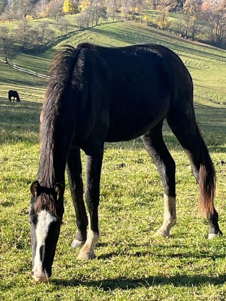 Almost 3-year-old mare by So Perfect! Beautifully conformed mare with plenty of movement. Currently grazing with her friends on the pasture, regularly dewormed, directly from the breeder. Her dam has also produced a reserve champion at the licensing in Austria. Price will increase with training!