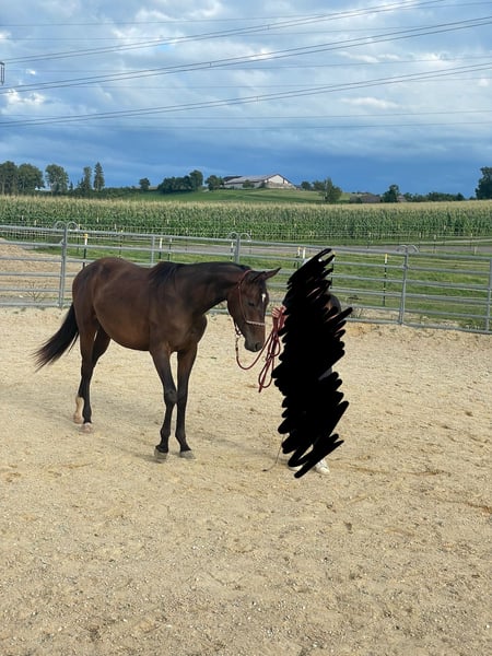 So kitschig es klingt, so wahr ist es… Felina, geboren 2023, ist ein absolutes Herzenspferd. Ihr einzigartiger Charakter macht es mir nicht leicht diesen Schritt zu gehen… sie hat es sich verdient die 100% Aufmerksamkeit zu erhalten, die ich ihr zukünftig aufgrund privater Umstände nicht mehr geben kann. Nichts destotrotz hat der Verkauf keine Eile und ich möchte den besten Platz und ihren Herzensmenschen für sie finden. Felina kennt für ihre 2 1/2 Jahre schon so einiges und das Fundament für ein tolles und verlässliches Reitpferd ist gelegt. Das Fohlen ABC kann sie im Schlaf, den Hufschmied findet sie spannend und wenn ein Anhänger offen steht, sieht sie es als ihre Pflicht einzusteigen. In der Bodenarbeit macht sie sich super und ist immer bemüht alles perfekt und richtig zu machen. Aktuell wird sie an das Reitequipment langsam herangeführt. Ihrem Alter entsprechend wird sie seit Tag 0 gefördert und gefordert. So süß und verschmust Felina sein kann, so wenig darf man ihr Alter und ihre Blutlinie außer Acht lassen. Sie hat Temperament, ist schnell und zeigt gerne wie viel Bewegungsspektrum in ihrem zarten Körper steckt. Eine feine Hand ist gefragt, wodurch sie ganz klar nur in erfahrene Hände abgegeben wird. Was ich mir für sie wünsche ist zum einen eine artgerechte Haltung in einem Offenstall. Sie stand für kurze Zeit in einer Box-Paddock-Haltung was für sie purer Stress war. Zum anderen einen Menschen der sie als das sieht was sie ist - ein sensibles und super motiviertes Lebewesen, was für jedem Spaß zu haben ist, aber ganz klar kein stumpfes Sportgerät. Bei ernsthafter Interesse ist eine Besichtigung nach Vereinbarung jederzeit möglich.