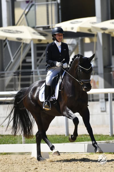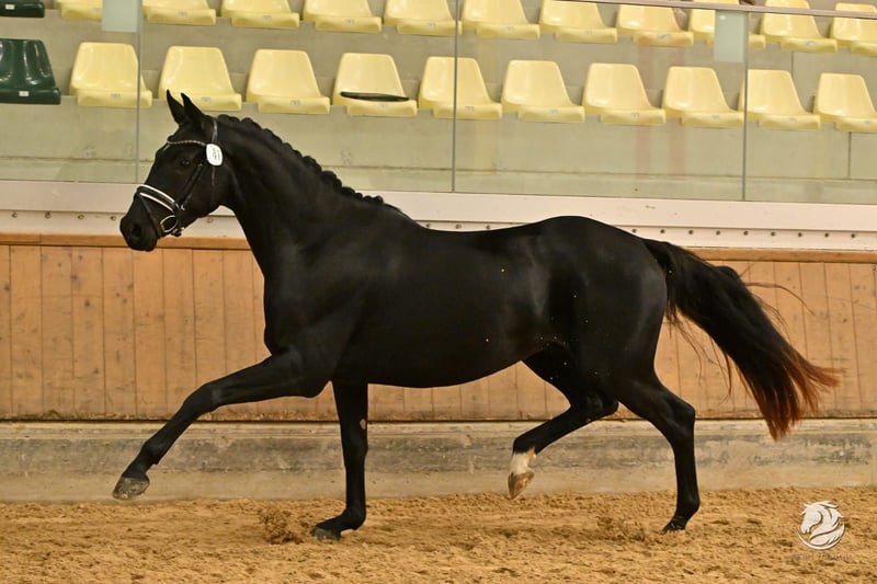 Bereits auf mehreren Turnieren in Dressurpferdeprüfungen der Kl. A vorgestellt, konnte sie sich immer auf den vorderen Plätzen einreihen und überzeugte durch ihren Charakter. Besondere Freude machte sie uns auf dem Reitpferdechampionat, auf dem sie die höchste Schrittnote mit 9,5 und eine 9 für den Gesamteindruck bekommen hat. Ihre Großmutter Antigone war die erste Stute, die für Österreich bei der WM der jungen Dressurpferde teilgenommen hat. Die Mutter Agrippina S war Siegerin in Jungpferdeprüfungen und in der Kl. M mit Ergebnissen bis 74% siegreich und in der Kl. S platziert, bevor sie der Zucht zugeführt wurde. Agrippina S wurde als Prämienstute aufgenommen. Diese Lackschwarze Stute wird nur deshalb direkt vom Züchter abgegeben, da die Tochter des Hauses aus beruflichen Gründen das Pferd nicht weiterreiten kann. Kontaktaufnahme ist gerne auch per WhatsApp möglich. +43 699 10801040