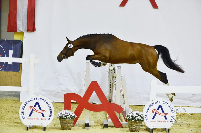 Stute, geb. 2018 – Comte x Cavalier (Mister) x Silbersee ▪️ Steirische Reservesiegerin Stutfohlen (springbetont) ▪️ Reservesiegerin Bundeschampionat (springbetont, 4-jährig) ▪️ Landessiegerin springbetonte Stuten – Freispringen mit 9,0 (4-jährig) ▪️ 2023 Fohlen von "Van Gogh" Sunny ist eine leichtrittige, fein zu reitende Stute mit drei herausragenden Grundgangarten. Sie bringt Mut, Ausstrahlung und Arbeitsfreude mit – eine echte Herzenspferd-Kandidatin für ambitionierte Reiter:innen! Auf diese Stute ist einfach überall Verlass, sei es am Reitplatz oder im Gelände. Aktuell ist Sunny vorne beschlagen. Abstammung mit Format: Comte überzeugt durch rittige, leistungsstarke Nachkommen. Der Muttervater Cavalier (San Patrignano Mister) war unter Franke Sloothaak international überaus erfolgreich und gewann über 40 Springprüfungen – darunter Große Preise & Mächtigkeitsspringen. Silbersee, ihr Urgroßvater, zählte in den 80er-Jahren zu den besten Springpferden weltweit. Noch keine Turniererfahrung – Preis steigt mit weiterer Ausbildung & Vorstellung.