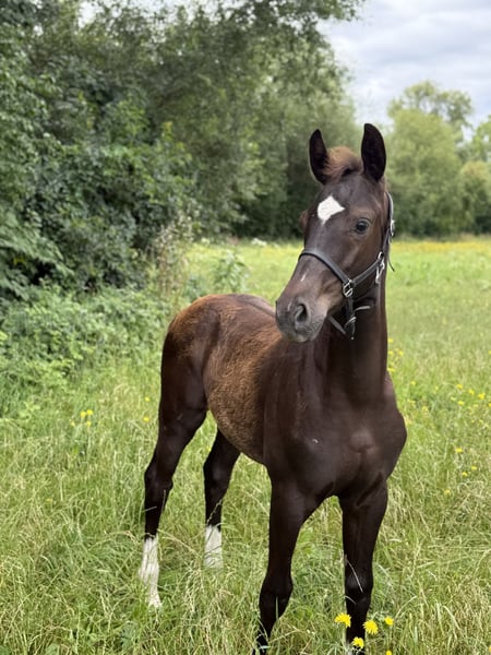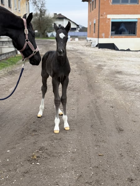 💫Primero💫 Geboren: 01.04.2025 Geschlecht: Hengst Grösse: Endstockmaß ca. 164 cm Abstammung: Vater: Pjethro ( Kjento x Desperado) Mutter: Verb.St. Primavera (St.Schufro x Millenium) Verkauft wird hier ein Mädchentraum. Primero ist ein wunderschönes, mit 4x weissen Füssen ausgestattetes Hengstfohlen. Er wächst artgerecht in einer Fohlengruppe auf. Primero hat einen Top Charakter von Geburt an, er ist ein Musterschüler der Sondergleichen. Natürlich wurde er regelmäßig dem Hufschmied vorgestellt und regelmäßig entwurmt ist er auch. Er war nie krank oder sonstiges. Er kann gerne zur Aufzucht bleiben und mit seinen jetzigen Kumpels aufwachsen. Primero wurde am Landeschampionat mit lauter 8er Noten belohnt. (Typ 8,0 – Gebäude und Korrektheit 8,5 – Bewegung 8,0) Er verpasste knapp den Einzug in das Bundescahmpionat. Sein Vater Pjethro ist leichtfüßig und reiterorentiert mit sehr guter Arbeitseinstellung. Wie auch sein Vater zeigt er sich unter dem Reiter mit sehr viel Mechanik in seiner Bewegung, vorallem im Trab und im Galopp mit überdruchschnittlich aktiven Hinterbein.. Sportlich startet Pjethro voll durch,und konnte sich bei Hors Truck Stallion Competition mit 87.8 Punkten für sich entscheiden. Zizat der Richter: „Dieses Pferd hat eine grosse Leichtigkeit in seinen Bewegungen, er einfach alles und dabei noch eine tolle Arbeitseinstellung!“ Seine Mutter ist Leistungsgeprüft und hat den Titel Verbandsprämienstute bekommen. Primavera wird bereits wieder geritten und ist immer brav und anständig dabei. Besichtigung gerne telefoisch 0043 676 934 73 10