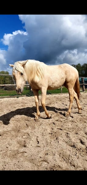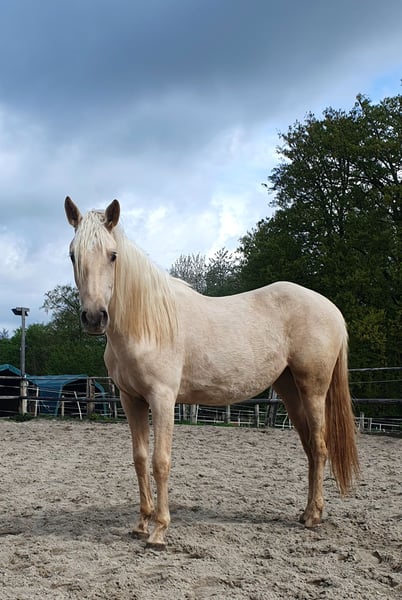 Our wonderful one-year-old Azteca mare from our own breeding is looking for a 5* home. Chexy impresses not only with her beauty but also with her wonderfully balanced and calm temperament. She is super brave, curious, and very interested in people. Additionally, she is completely unflappable and simply lovely to handle. Her curiosity and gentle nature make her an ideal future partner for all areas of recreational riding, Western classes, or Working Equitation. She has the potential to shine in many disciplines. Chexy is used to growing up in a herd, is well-socialized and mineralized. She is not familiar with box stalls and will not be placed there. Of course, she is farrier-friendly and loadable and already knows basic groundwork. We are looking for a person who will spend time with her and fully develop her potential. She will receive papers from AAHIA and of course has an equine passport. Key data: Breed: Azteca Gender: Mare Age: 1 year Color: Palomino Character: Calm, balanced, curious, unflappable Height: approx. 1.58 m The last two photos show the parents. Mother: PRE, Father: QH with old blood (Doc Chex)