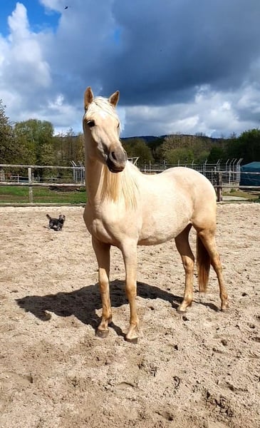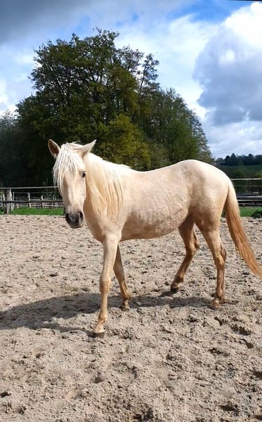 Notre magnifique pouliche Azteca d’un an, issue de notre propre élevage, recherche une famille 5 étoiles. Chexy séduit non seulement par sa beauté, mais aussi par son tempérament exceptionnellement équilibré et calme. Elle est très courageuse, curieuse et particulièrement intéressée par l’humain. De plus, elle est totalement sans peur et d’un tempérament doux dans ses interactions. Sa curiosité et sa nature douce en font une partenaire idéale pour toutes les disciplines de loisir, qu’il s’agisse de dressage, de western ou de Working Equitation. Elle a le potentiel pour briller dans de nombreux domaines. Chexy est habituée à évoluer en troupeau, parfaitement socialisée et minéralisée. Elle n’a jamais été en box et ne sera pas placée en box. Elle est bien entendu ferrée et débourrée, connaît déjà les bases du travail à la longe. Nous souhaitons pour elle un propriétaire qui prendra le temps de s’investir avec elle et d’exploiter pleinement son potentiel. Elle possède un pedigree de l’AAHIA et détient un passeport européen. Caractéristiques principales : Race : Azteca Sexe : Pouliche (jument) Âge : 1 an Couleur : Palomino Caractère : Calme, équilibrée, curieuse, sans peur Taille au garrot : env. 1,58 m Les deux dernières photos montrent ses parents. Mère : PRE, Père : QH avec du sang ancien (Doc Chex)