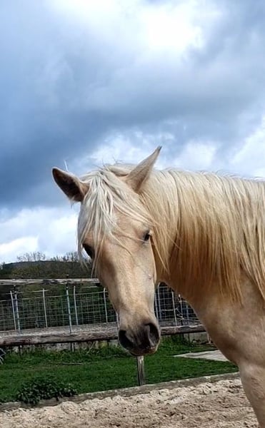 La nostra splendida puledra Azteca di un anno, di proprietà propria, cerca una casa 5*. Chexy conquista non solo per la sua bellezza, ma anche per il suo carattere equilibrato e tranquillo. È molto coraggiosa, curiosa e interessata alle persone. Inoltre, è totalmente senza paura e molto dolce nel rapporto con l’uomo. La sua curiosità e il suo modo gentile la rendono una partner ideale per tutte le discipline del tempo libero, come il dressage, il western o la working equitation. Ha il potenziale per eccellere in molti ambiti. Chexy è abituata a crescere in una mandria, è ben socializzata e mineralizzata. Non conosce l’allevamento in box e non verrà affidata a tale sistema. Naturalmente, è ferrata e abituata alla messa in stalla, conosce già le basi del lavoro a terra. Desideriamo per lei una persona che possa dedicare tempo a lei e valorizzare appieno il suo potenziale. È in possesso dei documenti AAHIA e ha naturalmente il passaporto equino. Dati principali: Razza: Azteca Genere: femmina (stute) Età: 1 anno Colore: Palomino Carattere: tranquilla, equilibrata, curiosa, senza paura Altezza al garrese: circa 1,58 m Le ultime due foto mostrano i genitori. Madre PRE, padre QH con sangue antico (Doc Chex).