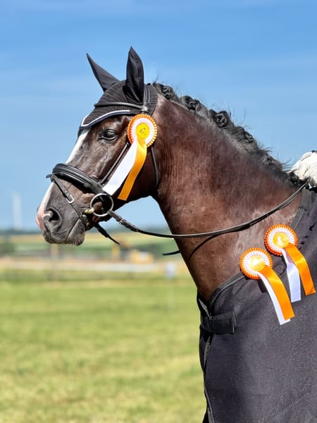 The seven-year-old gelding is a real eye-catcher that draws attention. Not least because of this, he has won A and L dressage competitions in a row this season with a young rider. So far, he has mainly been trained in dressage, but due to his lineage, he has a double talent. He loves to jump and does so very well, with plenty of fun and sufficient temperament. We can very well imagine a place for him where both talents can be further developed and where his qualities are appreciated. The black horse is easy to ride, comfortable to sit on, and is completely uncomplicated to handle.